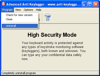 click to Uninstall Advanced Anti Keylogger shortcut.